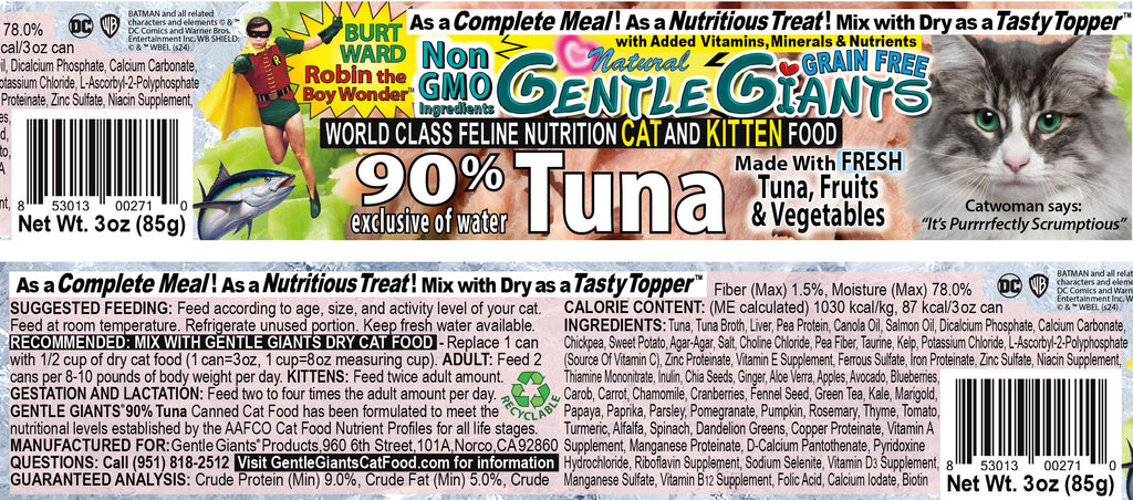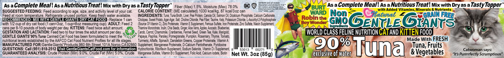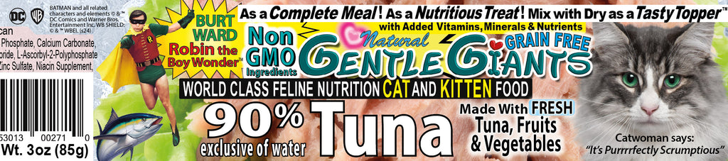 Tuna, Tuna Broth, Liver, Pea Protein, Canola Oil, Salmon Oil, Agar Agar, Calcium Carbonate, Salt, Chickpea, Sweet Potato, Dicalcium Phosphate, Choline Chloride, Pea Fiber, Taurine, Potassium Chloride, Kelp, L-Ascorbyl-2-Polyphosphate (Source Of Vitamin C), Zinc Proteinate, Vitamin E Supplement, Ferrous Sulfate, Iron Proteinate, Zinc Sulfate, Niacin Supplement, Thiamine Mononitrate, Inulin, Chia Seeds, Ginger, Aloe Verra, Apples, Avocado, Blueberry, Carob, Carrot, Chamomille, Cranberries, Fennel Seed, Green Tea, Kale, Marigold, Papaye, Paprika, Parsley, Pomegranate, Pumpkin, Rosemary, Spirulina, Thyme, Tomato, Turmeric, Alfalfa, Spinach, Copper Proteinate, Vitamin A Supplement, Sodium Selenite, Manganese Sulfate, Vitamin D3 Supplement, Vitamin B12 Supplement, Calcium Iodate, Biotin, Folic Acid.