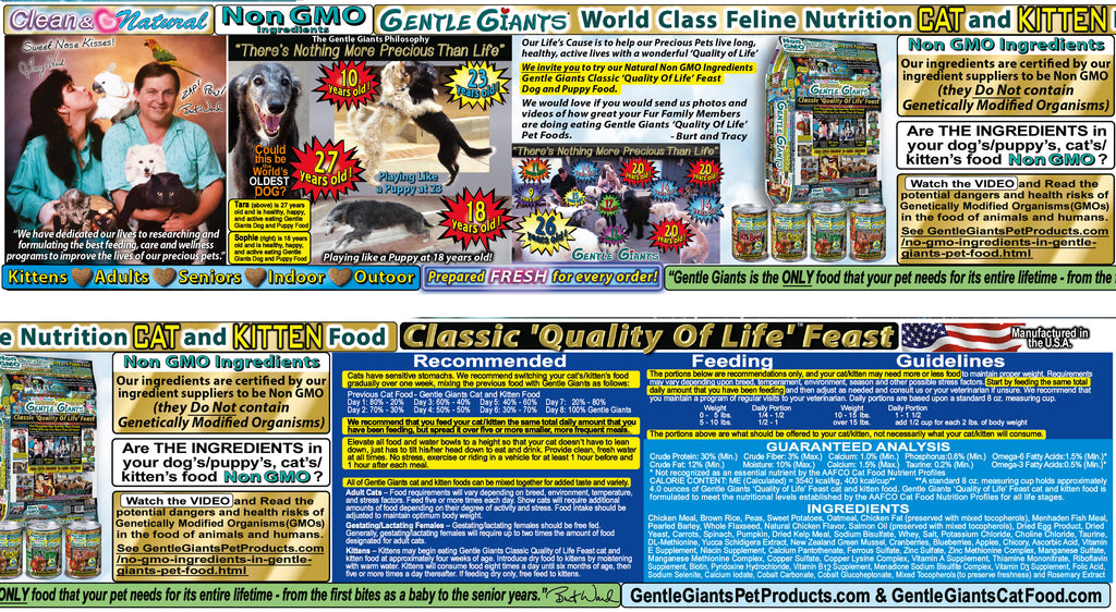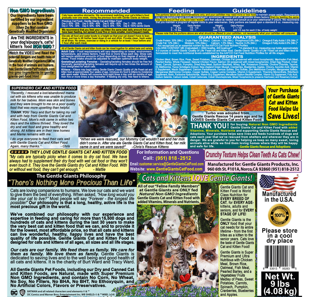 Gentle Giants World Class Feline Nutrition Cat and Kitten Food is formulated to meet the nutritional requirements established by the AAFCO Cat Food Nutrition Profiles for all life stages