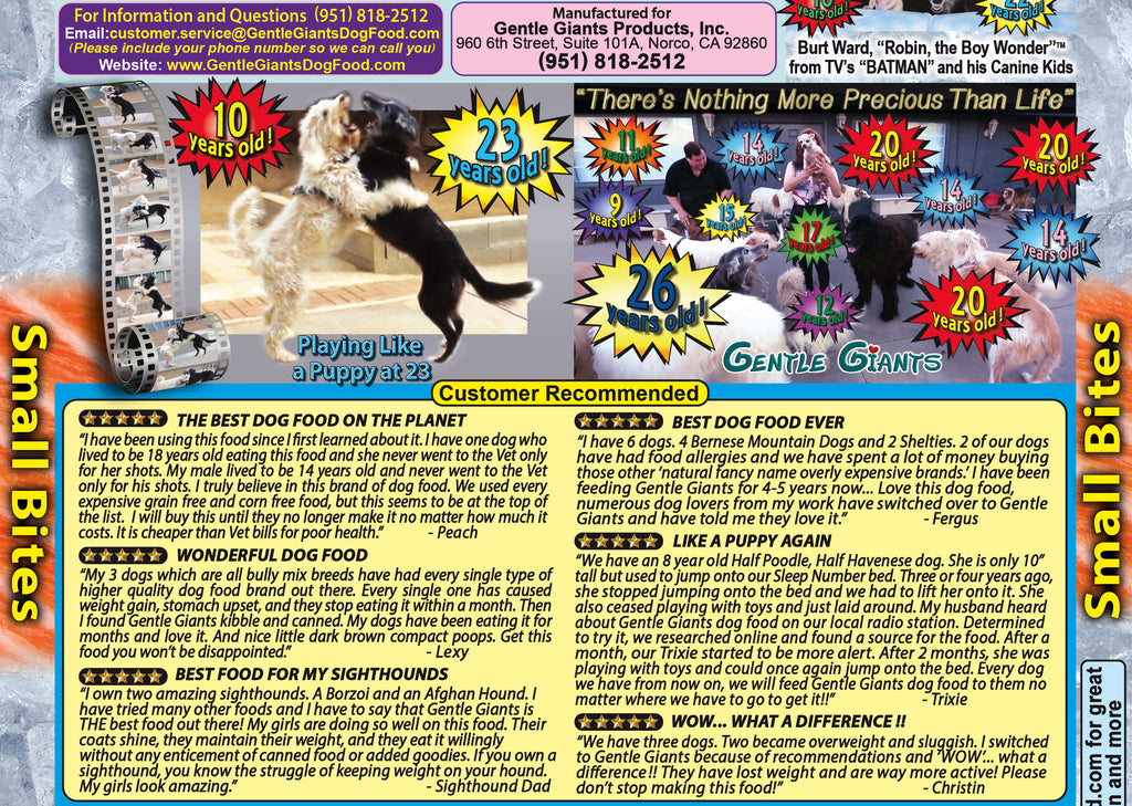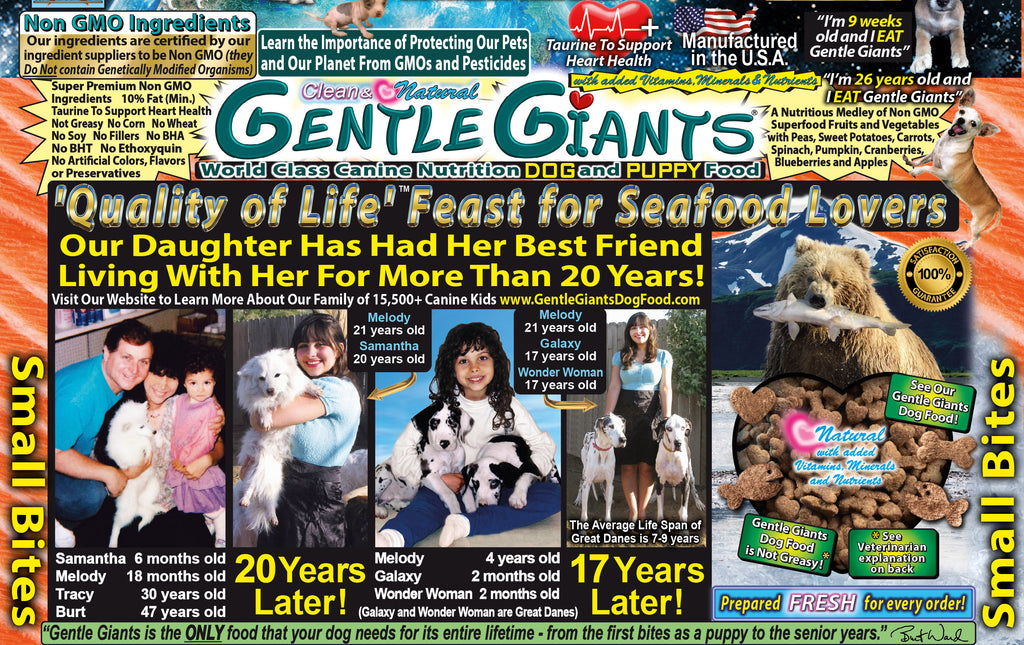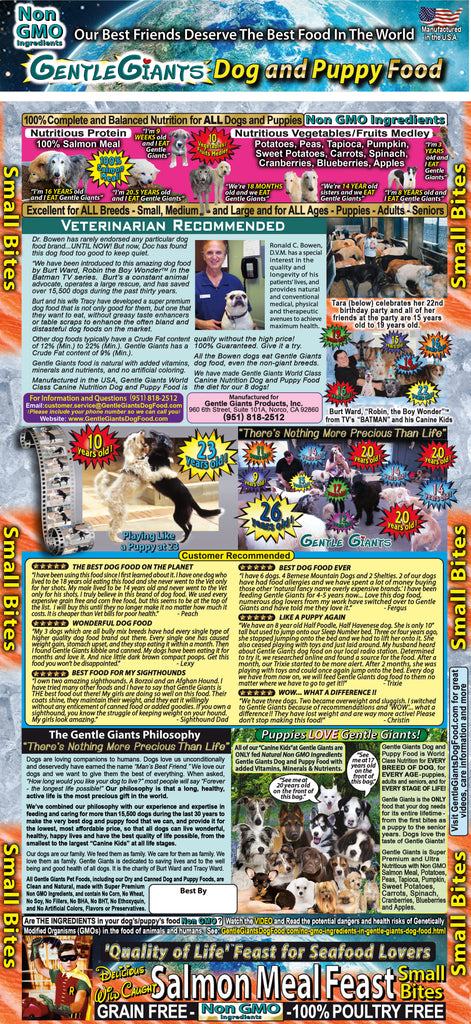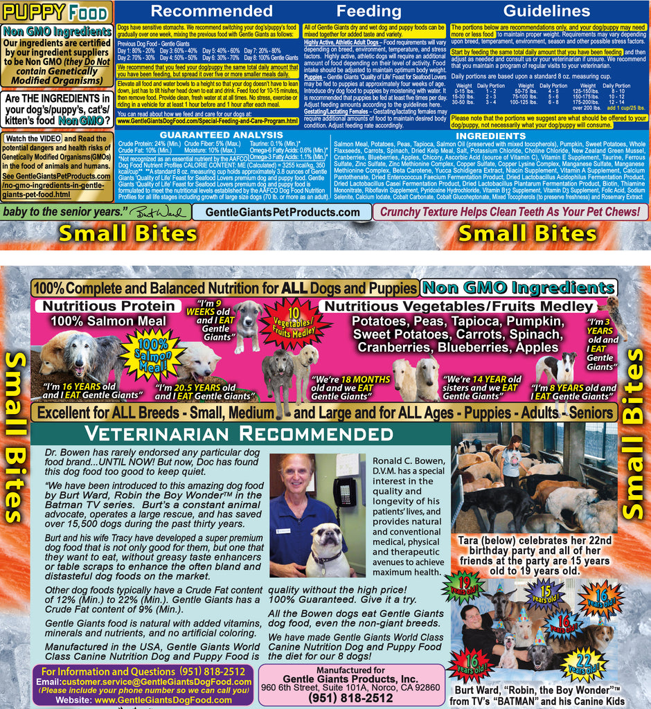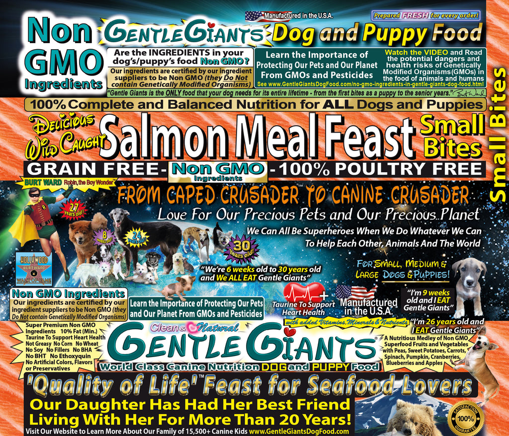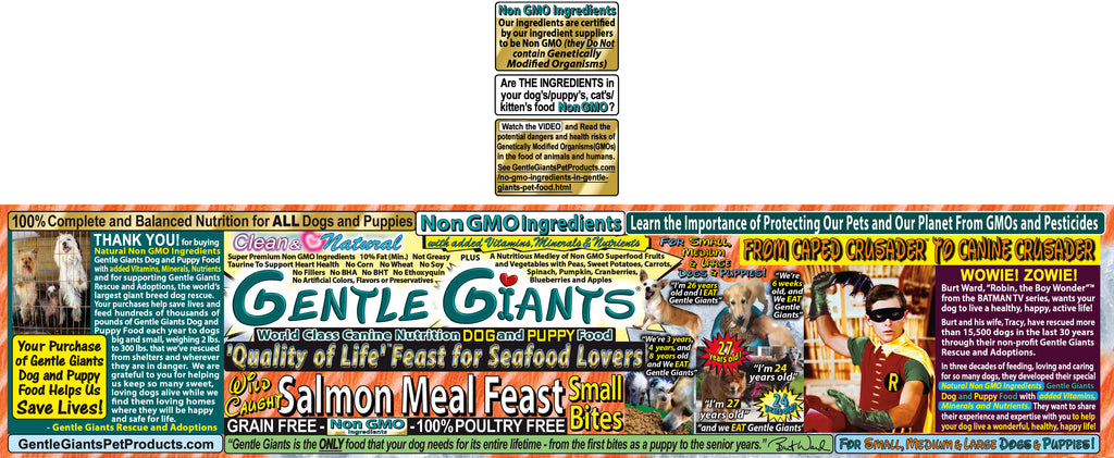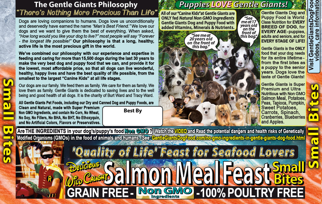 Gentle Giants Salmon Feast - Grain Free 24-10 Premium Dog Food is formulated to meet the nutritional levels established by the AAFCO Dog Food Nutrient Profiles for all life stages including growth of large size dogs (70 lb. or more as an adult).