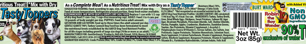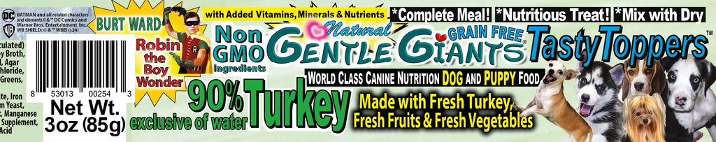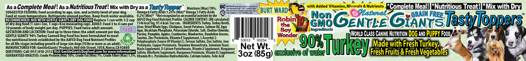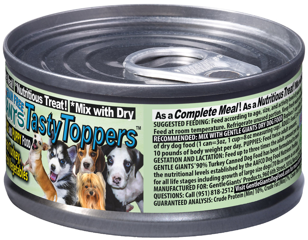 3 oz. Gentle Giants 'Quality of Life' 90% Turkey -<br>Canned Dog and Puppy Food<br>Natural, Non GMO Ingredients<br>