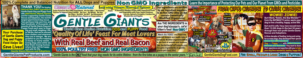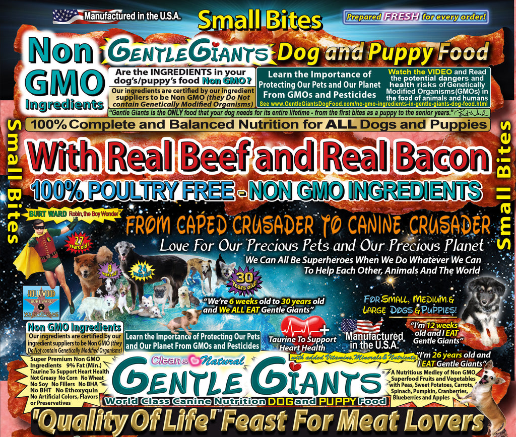 3 lb. Small Bites - Gentle Giants 'Quality of Life' Feast for Meat Lovers - with Real Beef & Real Bacon -<br>Dog and Puppy Food<br>Natural, Non GMO Ingredients