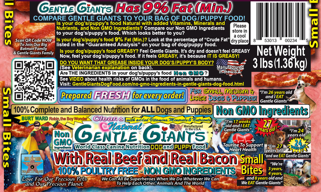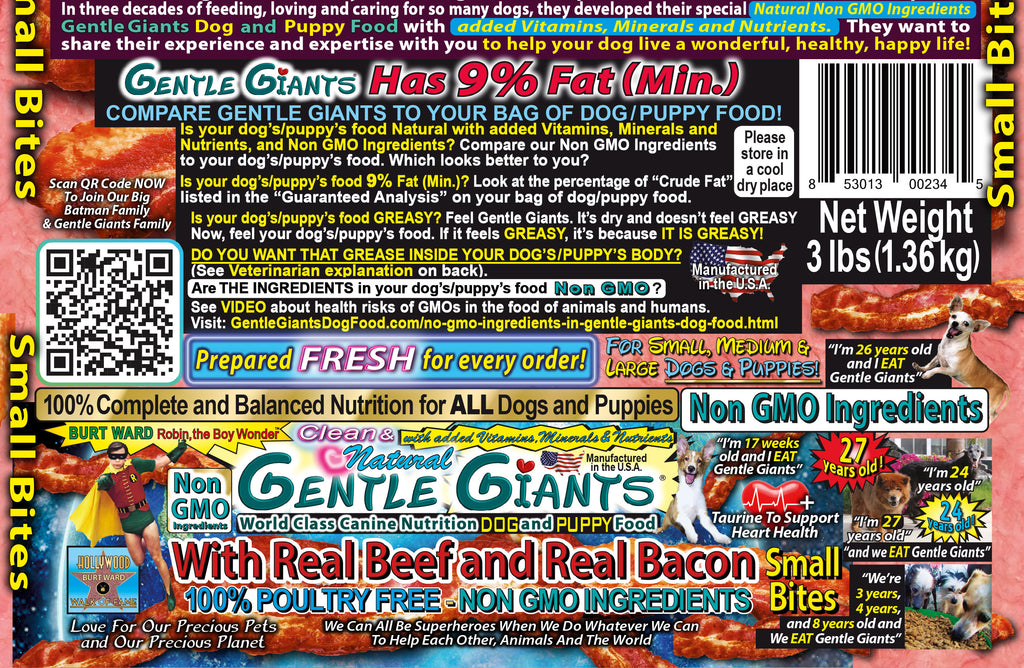 3 lb. Small Bites - Gentle Giants 'Quality of Life' Feast for Meat Lovers - with Real Beef & Real Bacon -