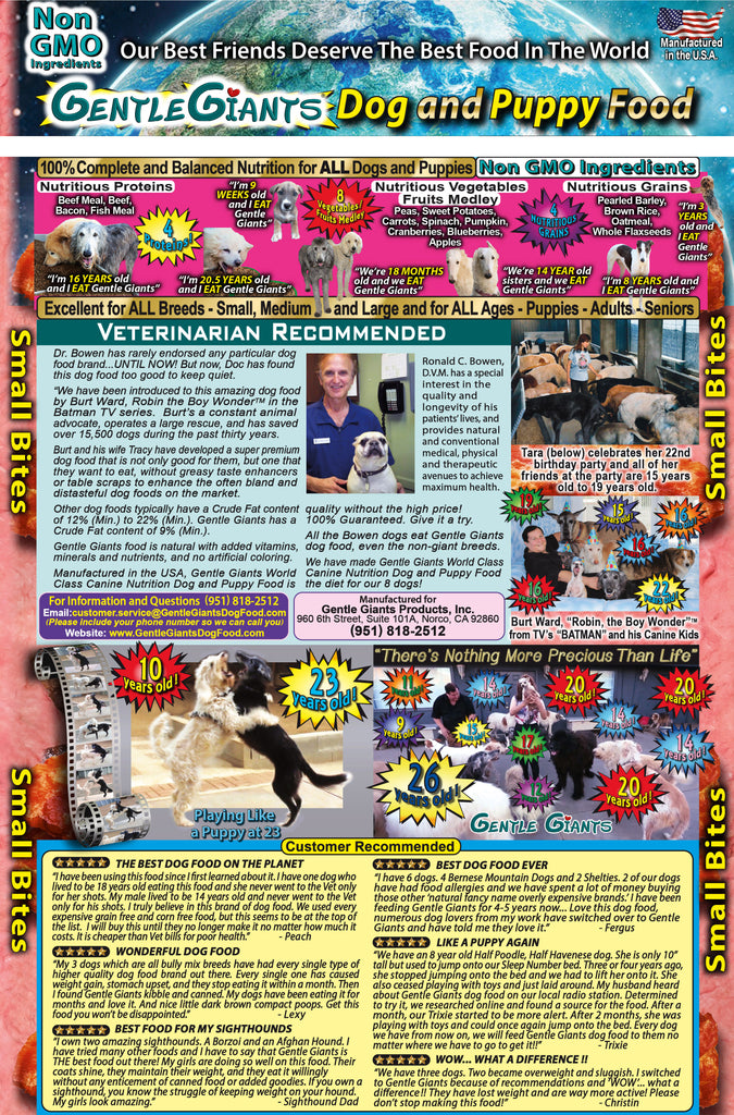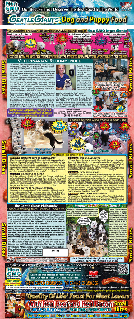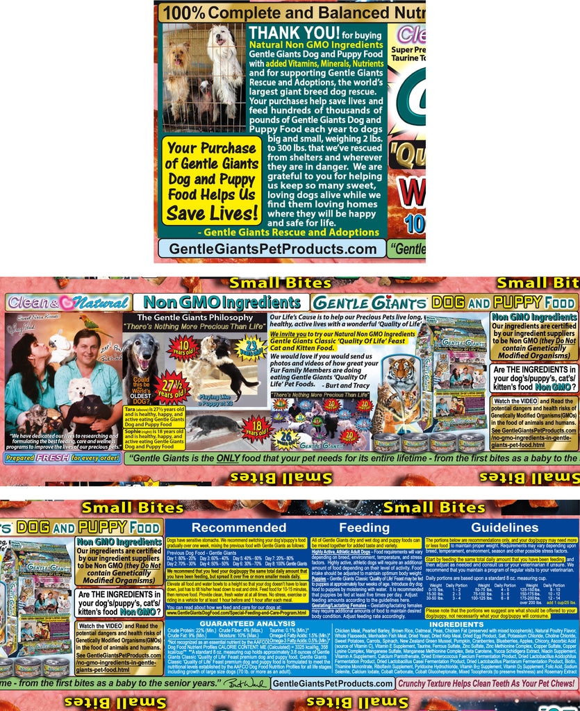 Our vet (and many others over the years) would be in awe whenever we would get her blood work done and her bi-annual checkups. They just couldn't believe that she was in impeccable shape and as she grew older no one could believe her age. They thought we were lying. We would just tell them Gentle Giants Natural Non GMO Dog and Puppy Food is the answer to adding many more healthy and active years to your little loved one's life. We stand by all your products and now we feed our cats Gentle Giants Cat and Kitten Food as well. Thanks you from the very heart of our souls for you and your vision in helping others like us. God bless you both & your family.